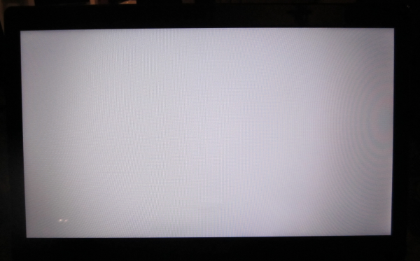 The lens effect macro structure is independent of the image contents. For example, the following picture of a computer monitor has a visible moiré pattern. The moiré pattern appears as a series of complex wave patterns in the white screen because the monitor's pixel elements do not perfectly align with the camera's sensor elements. (Don't see it? Look closely for fine vertical gray lines in the middle and a ringing pattern on the photo-right edge.)